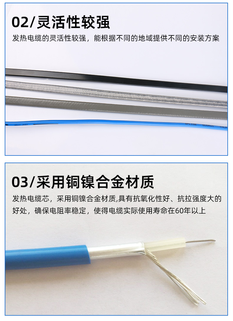 “發(fā)熱電纜是一個電加熱裝置,通過埋設(shè)在混凝土以下,由下至上傳熱,可以快速融雪化冰、設(shè)計簡單、安裝方便。避免了使用撒鹽或者鏟雪帶來的安全問題。使用發(fā)熱電纜融雪系統(tǒng),車輛的安全性得以提高,人們也不會因為雪天路滑而摔倒,造成人員傷亡和財產(chǎn)損失。為了保證坡道的安全和通暢,可采用智能冰雪溫控器進行控制,溫控器的安裝位置根據(jù)現(xiàn)場的實際情況進行確定。